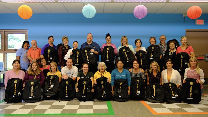 Top: Nay Ah Shing Abinoojiiyag 2018-19 staff showed off the new Nay Ah Shing backpacks in the STEAM lab. Below: Gregg Rutter of the NAS Gifted and Talented program is the mad scientist behind the new STEAM lab.