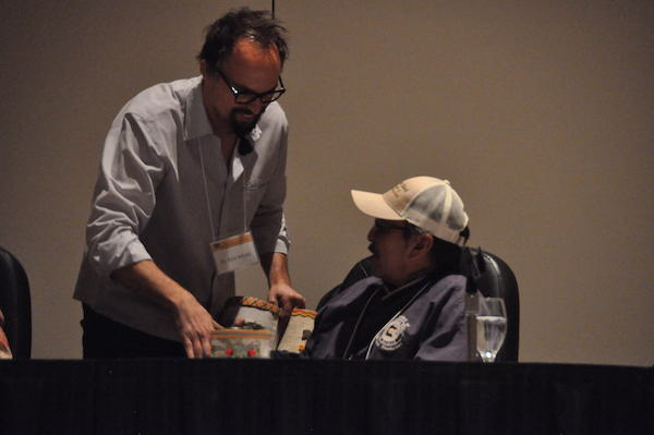 Larry ‘Amik’ Smallwood, who served as master of ceremonies, also shared stories of ricing during the morning session. Before the session began, he told the guests about the history of the Mille Lacs Band and the casinos, attributing the Band’s success to its adherence to traditions.