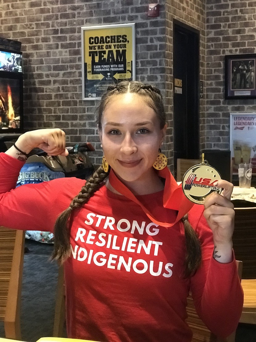 “There are not many Indigenous people who are into powerlifting,” said Jenesis, whose mom is Mille Lacs Band member Rina Reese Fonder. “There are not many big names in the sport, and it’s mostly dominated by white males. I hope to change that.”