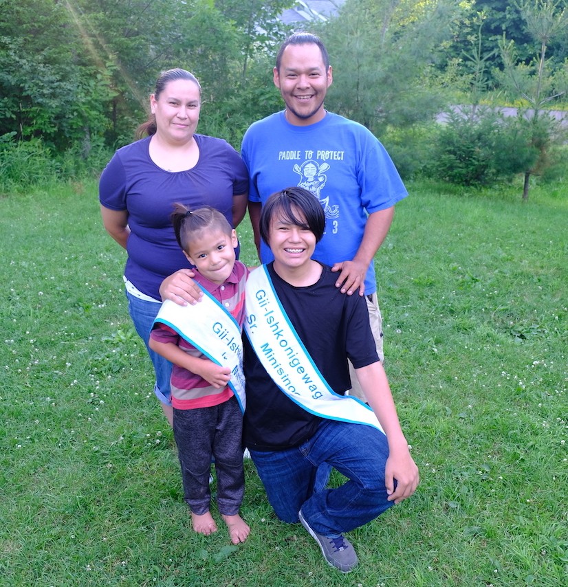 Harvey and Morningstar’s sons Chinoodin, 14, and Destan, 6, have followed in their parents’ footsteps, and in 2018 became Senior and Junior Brave at the Gii-Ishkonigewag Powwow in District II. (This year’s powwow took place July 26-28, after this issue of Ojibwe Inaajimowin went to press. See the September issue for coverage.)