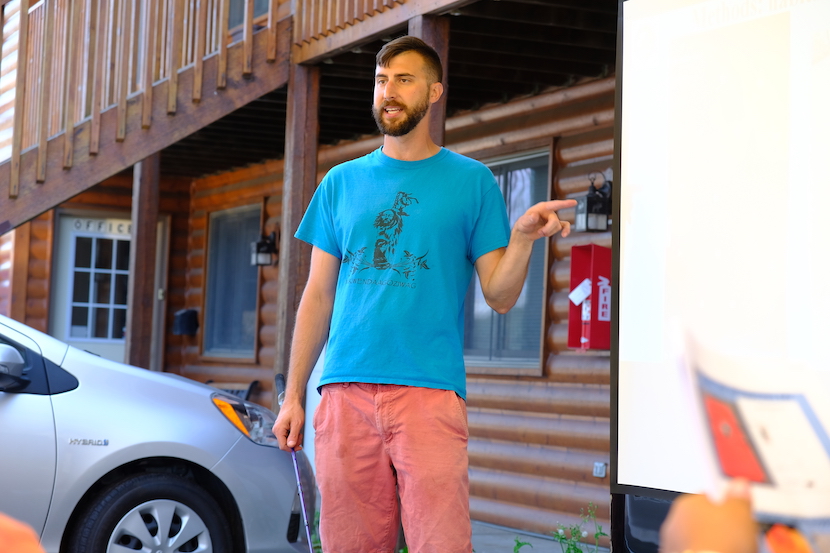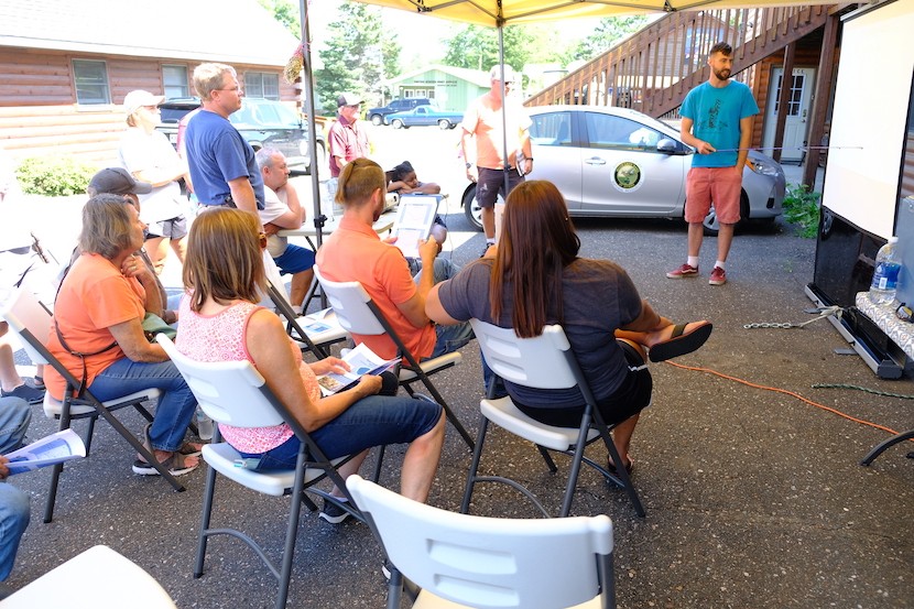 Photos: Biologist Carl Klimah of the Mille Lacs Band DNR's Fisheries Program gave two presentations on the ogaa tracking study at Wahkon Days on Saturday, August 17, at the Government Affairs office in Wahkon.