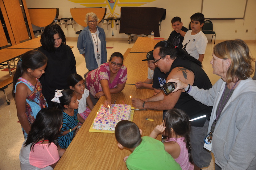 Vince has high praise for the staff — not just the administrators like Director Marysue Anderson or Business Manager Raina Killspotted, but the teachers and support staff as well: Dawn LaPrairie, the K-3 teacher who is in her second year; Steve Williams, the IT manager who does "a little bit of everything"; Rosa Colton, a transfer from Nay Ah Shing in District I; teacher assistants John Schmidt and Chelsy Wilkie of the Turtle Mountain Ojibwe; Kitchen Staff April Boyd, Amanda Anderson, and Mary Boyd; and Elders Marene Hedstrom, Laura Shingobe, and Winnie LaPrairie, who share time so there's always an Elder present.