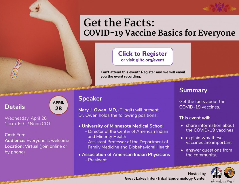 Many people still have questions or concerns about the vaccines. That’s why the Great Lakes Inter-Tribal Epidemiology Center (GLITEC) is hosting this event to help you get your questions answered and empower you to make an informed decision.