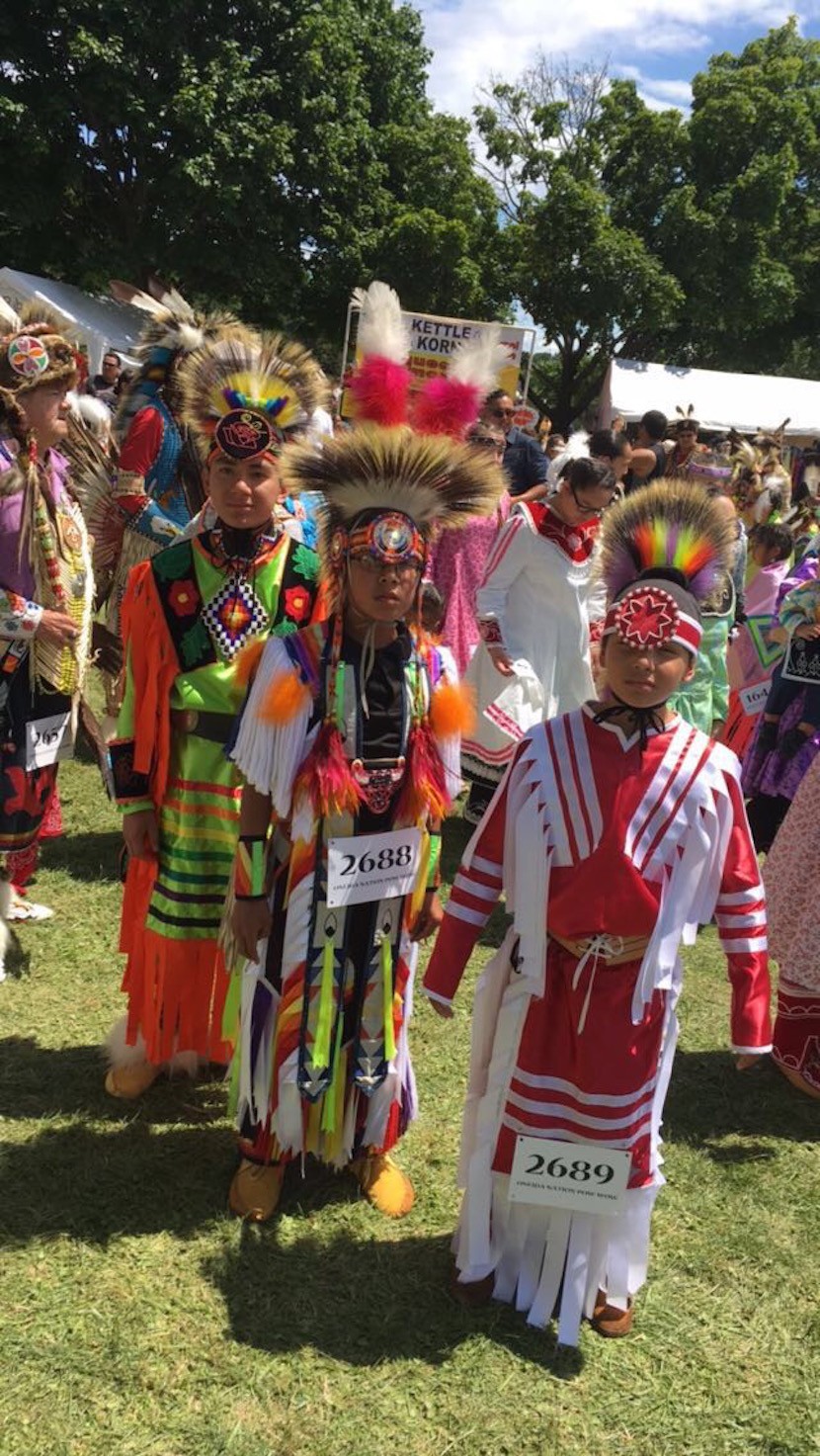 Above: Dante Benjamin, Cedric Bearheart, and Jason Wind participated in the 54th Annual Oneida Nation Contest Powwow.