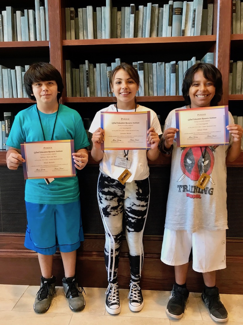 For the sixth year, students attended the GERI (Gifted Education Resource Institute) Summer Residential program at Purdue University in West Lafayette, Indiana, for two weeks in July. Dajatay Barnes, Mia Sam, Chase Sam, Bella Nayquonabe, Molly Saboo, Louis Whiteman, Serenitie Morin, Blade Bastedo, and Adrian Wade all participated this year – and all were returning students. This was the fifth year that both Mia and Dajatay went to Purdue.