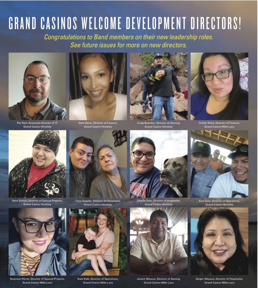 Congratulations to twelve Band members who have started Director positions with Grand Casinos! Stay tuned for more information on our new business leaders.