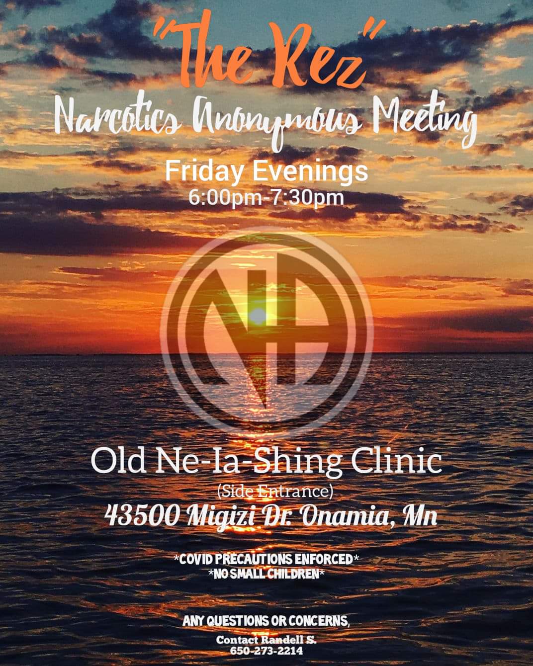 Recovery meetings are held via Zoom conference during the COVID-19 pandemic. The Monday night Migizi meeting ID is 856 8473 0121, and the password is 56359. The Wednesday night Red Brick meeting ID is 895 631 97923, and the password is 56359. The Thursday Wellbriety meeting ID is 966 0395 9591, and the passcode is 944772. The nightly Zooming Towards Recovery code is 601-532-2869, and the password is zoom800. NOTE: ”The Rez” NA meeting starts at 6 p.m. at a new location: the old Ne-Ia-Shing Clinic, 43500 Migizi Drive.