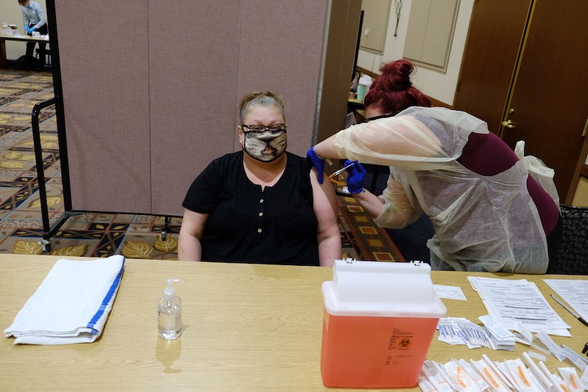 Photo: Diane Barrick of Hinckley got a shot in the arm from Tiffany Bellanger at Grand Casino Hinckley on February 24.