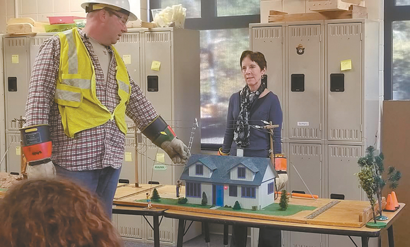 East Central Energy brought a model of a house that shows what can happen when a metal ladder gets too close to a power line.