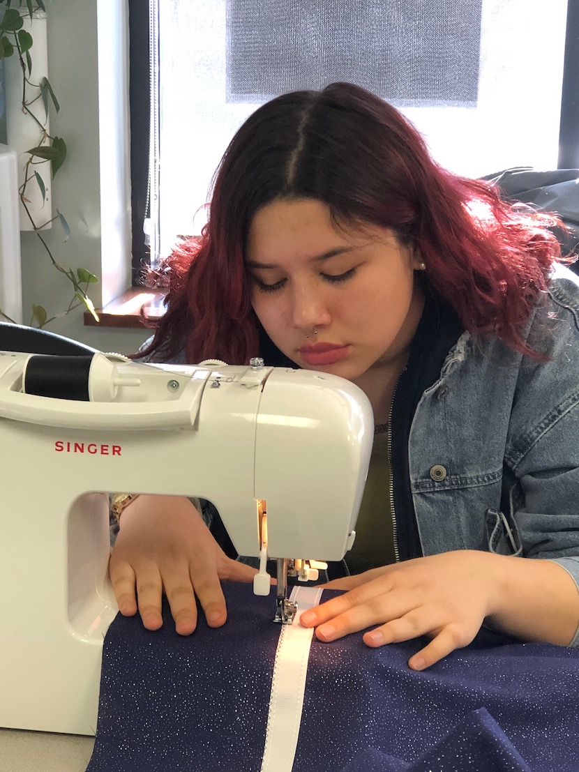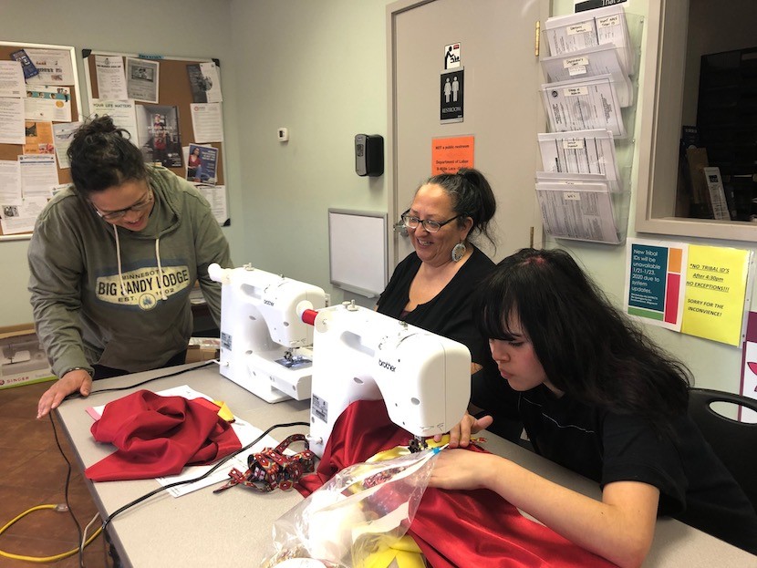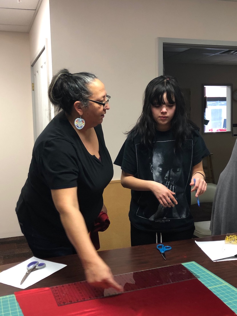 "I wanted to make a skirt to have it for ceremonies," said Tehya, 15, who was working on a blue ribbon skirt. "I've never sewn before, but I thought it would be great to learn."