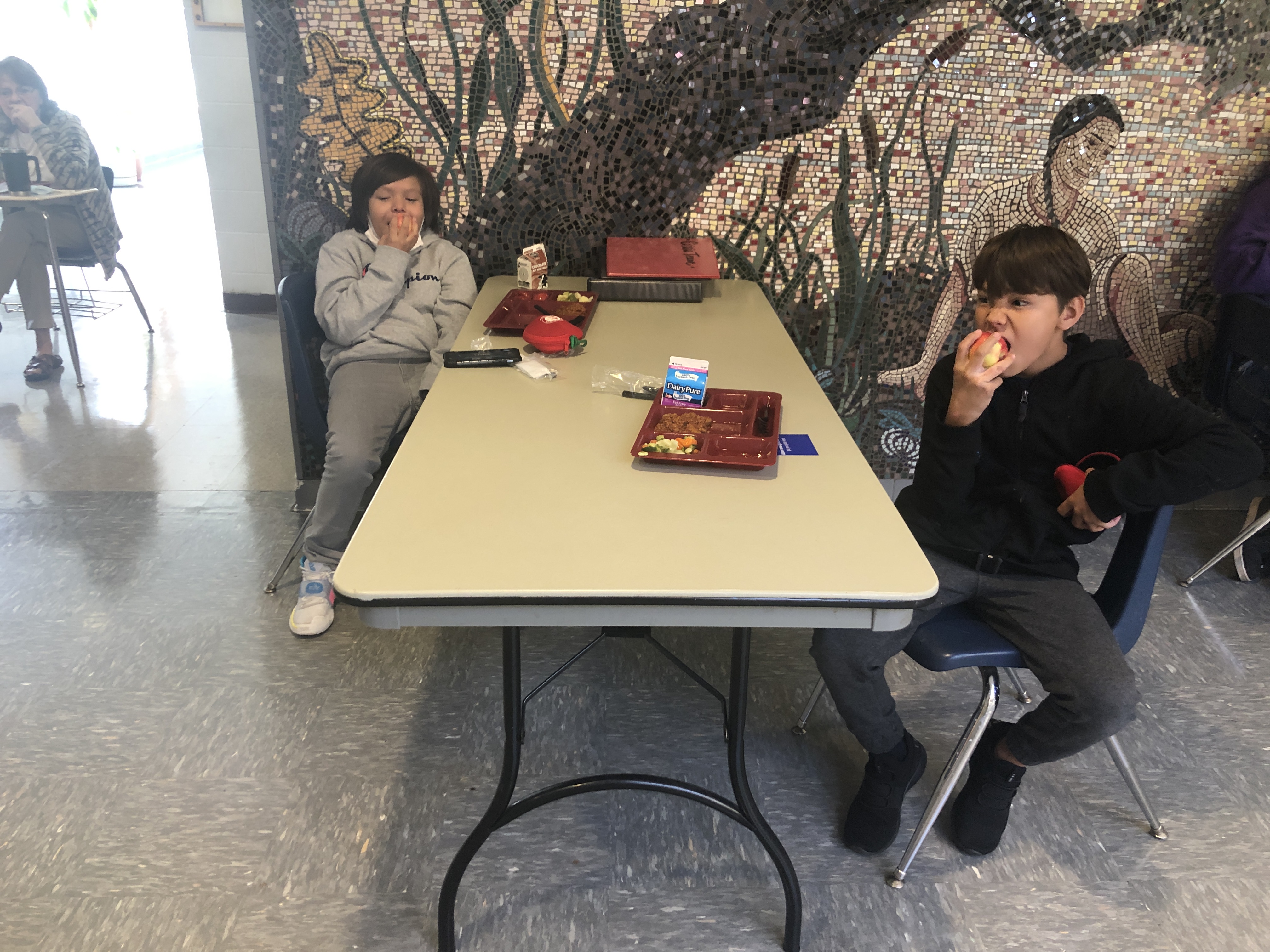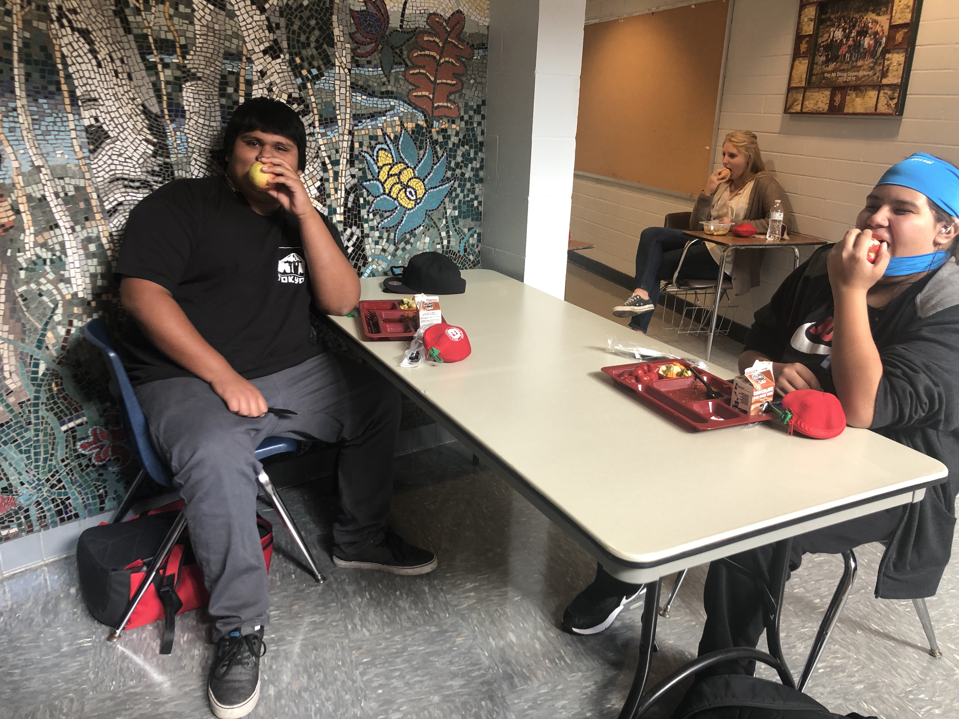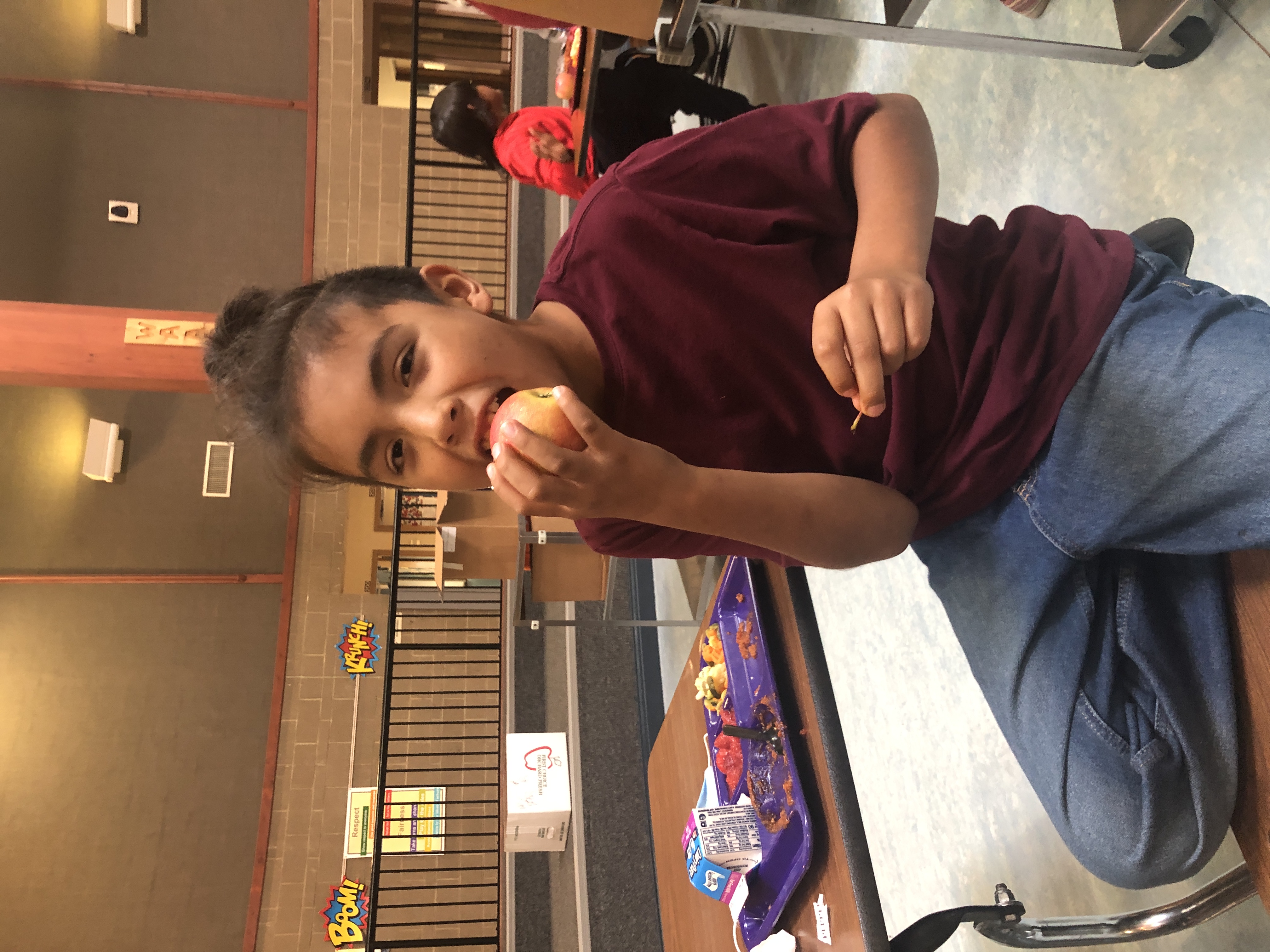 Nay Ah Shing and Pine Grove students celebrated National Farm to School Month by crunching into locally and regionally grown apples on Thursday, October 8. Pine Grove students joined their Nay Ah Shing colleagues via interactive TV. K-12 schools from Minnesota, Wisconsin, Illinois, Indiana, Michigan, and Ohio participated in lunchrooms, classrooms, and online. On October 1, 2019, 815,331 students, children, teachers, and good food supporters across the region crunched together to recognize the importance of healthy, local foods. Nay Ah Shing/Pine Grove Nutrition Services Coordinator Deborah Foye coordinated the effort in our schools, with help from Mary Pyawasit. Miigwech, Deb and Mary!