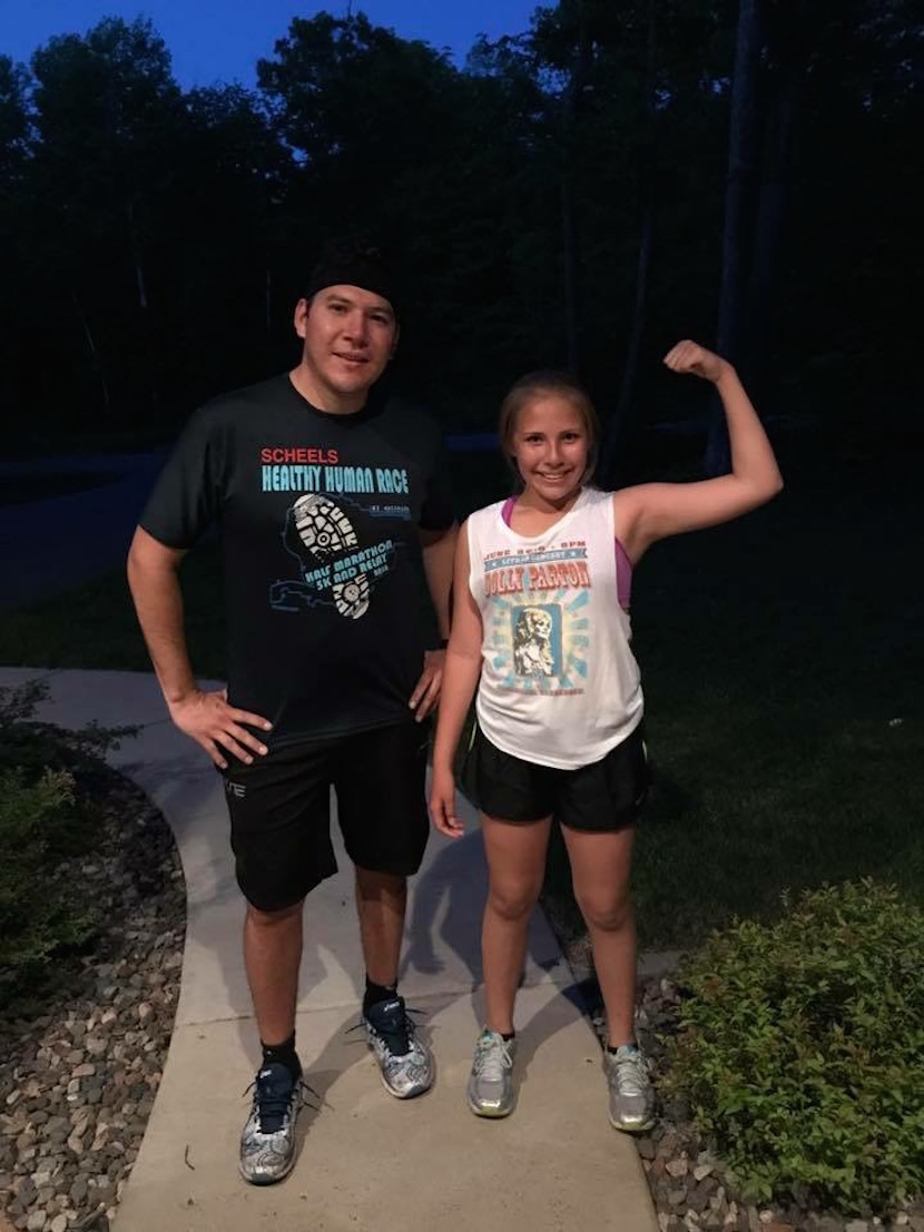 My daughter Bella started cross country running last year and loved it, so I thought it would be fun to have her and I run a race together. We decided that we would train for the Garry Bjorklund Half Marathon in Duluth and run that race together. This race wasn’t going to be about my personal best; I just wanted to complete it with my daughter. During one of our training runs, I noticed that I was quite a bit ahead of her. I looked back and saw her dedication and determination to try to catch up to me. I felt terrible so I ran back to her and finished at her pace. That was a huge lesson for me that day. When I am by myself, I push myself to run better, run faster. It’s ok to take time for you and surpass your goals, but it shouldn’t always be about us — especially when it comes to our kids. That run wasn’t about me — it was about making sure that she felt good about herself and comfortable with her run. I was a very proud dad when Bella and I finished 13.1 miles and crossed the finish line together, hand-in-hand.