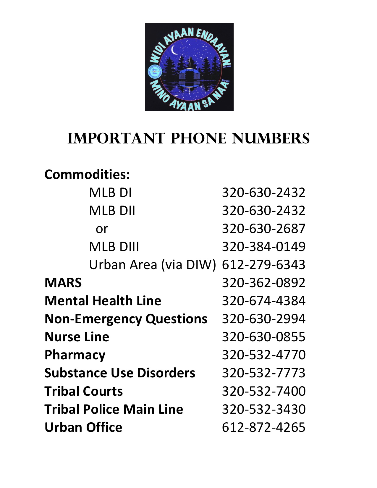 Health and Human Services Commissioner Nicole Anderson wants to remind Band members the new HHS Building is open and ready to serve Band members with all services under one roof. You can call 320-532-4163 and there are prompts to direct you to the services you need. The nurse line is 320-630-0397 or 320-630-0855 for after hours.
