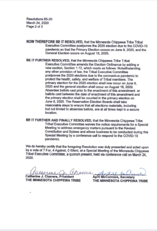 Please click here for a letter to Band members from Chief Executive Melanie Benjamin and Secretary/Treasurer Sheldon Boyd.
