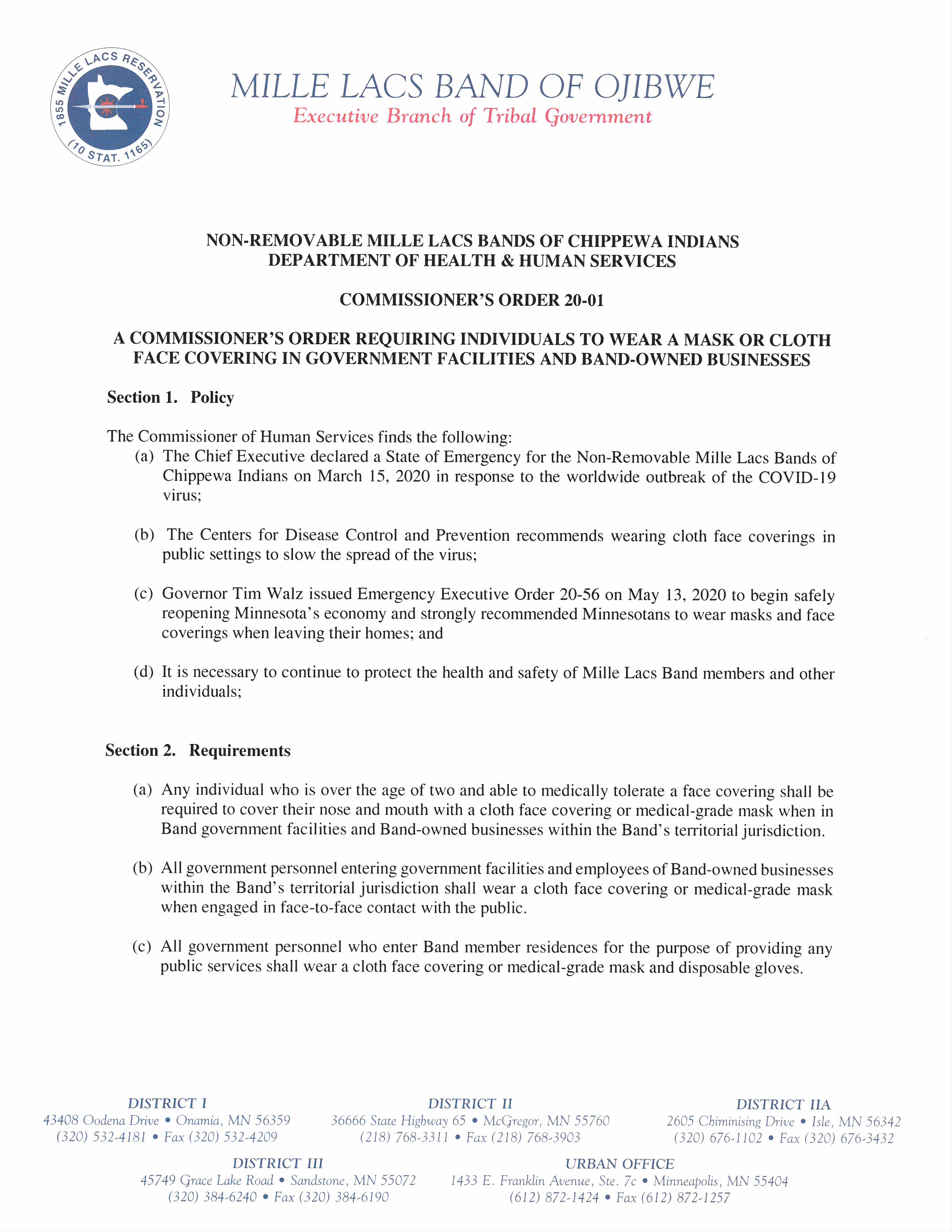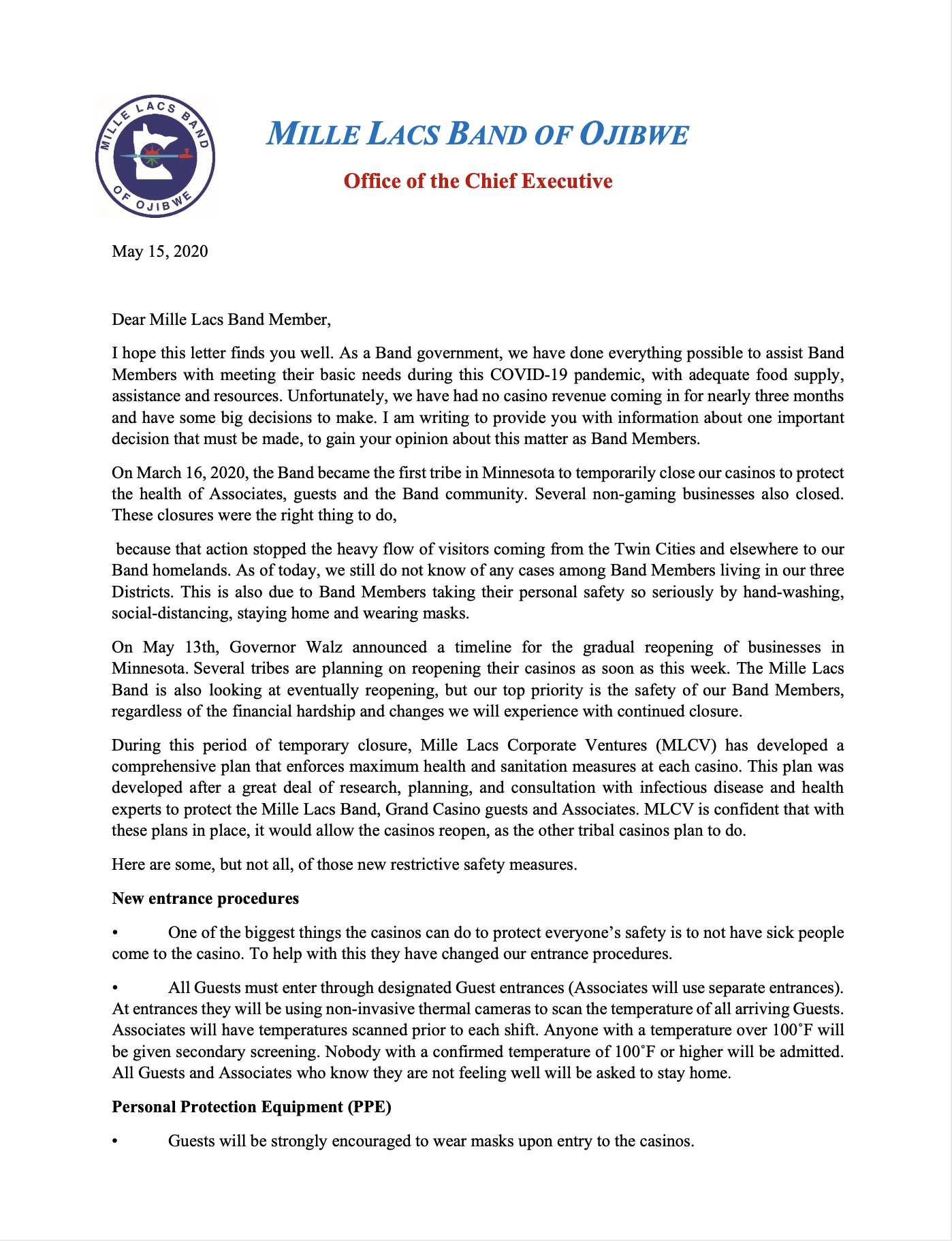 For the Chief Executive's video updates, please see the Mille Lacs Band's YouTube page.